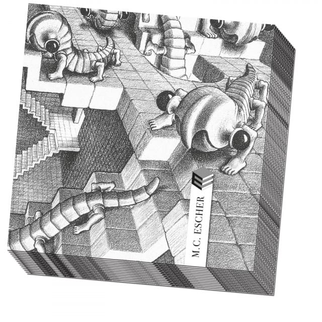 Papieren, disposable servetten met de House of Stairs ( Trappenhuis ) afbeelding. 13 x 13 inch, 33 x 33 cm. Verpakt per 20.